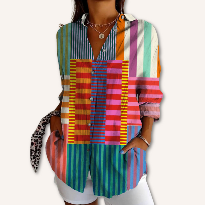 La camisa Elena™ combina un diseño moderno con un estampado artístico que no pasa desapercibido. Perfecta para quienes quieren destacar con elegancia, sin sacrificar comodidad.