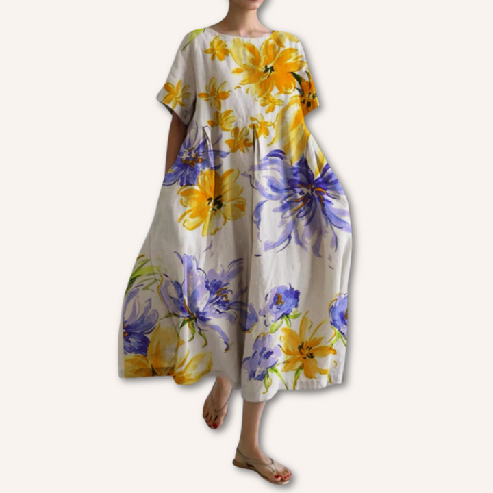 Grace™ es ese vestido que combina comodidad, estilo y frescura. Su estampado versátil lo convierte en una prenda perfecta tanto para planes informales como para ocasiones más especiales. El diseño largo y fluido favorece cualquier silueta, mientras que su tejido ligero lo hace ideal para los días más cálidos.