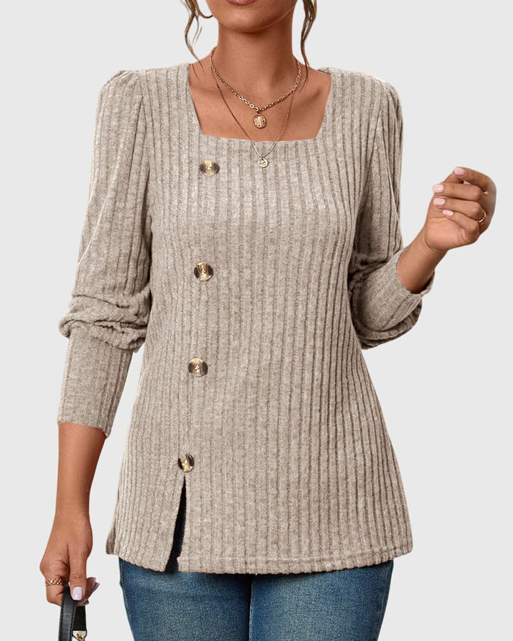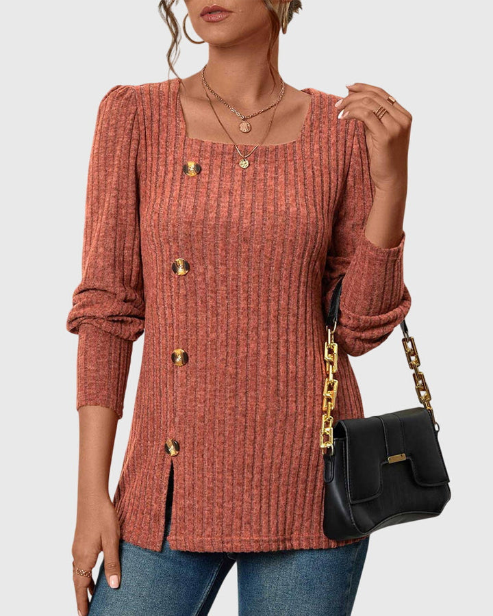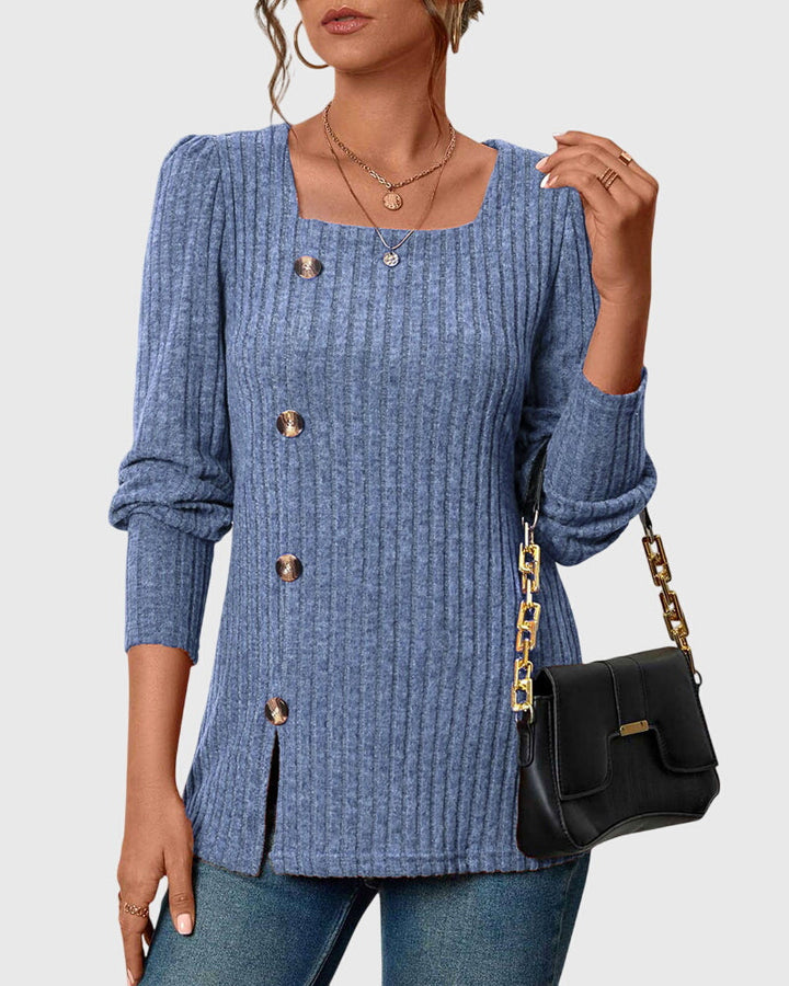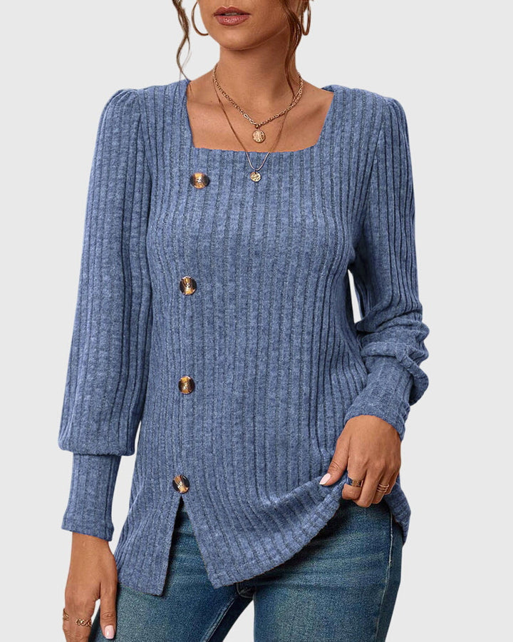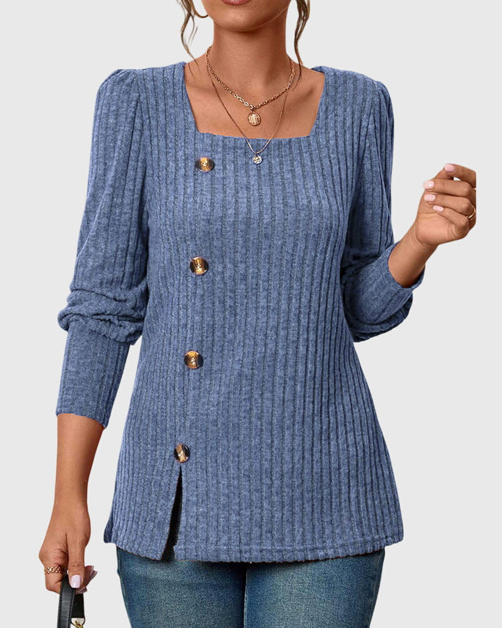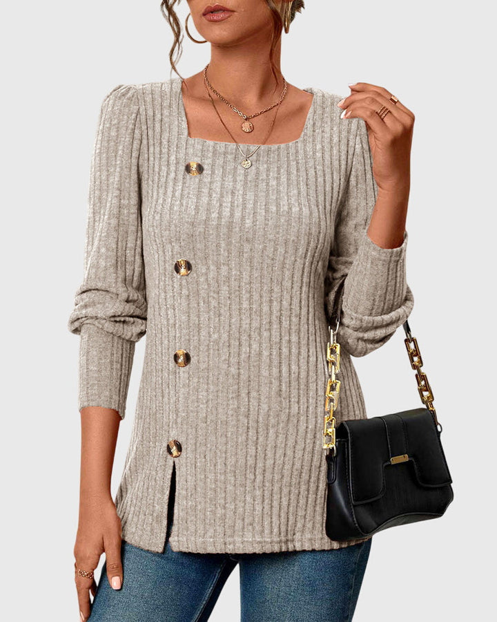 Iliana | Camisa monocromática con cuello cuadrado y botones