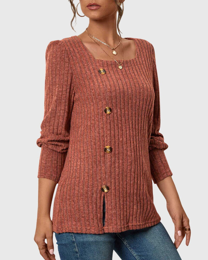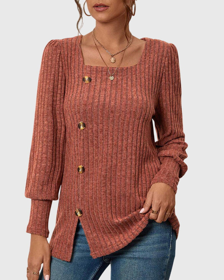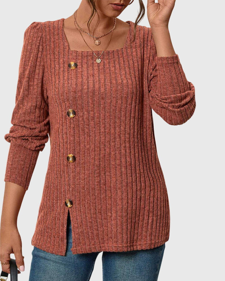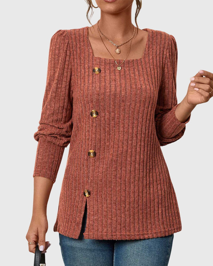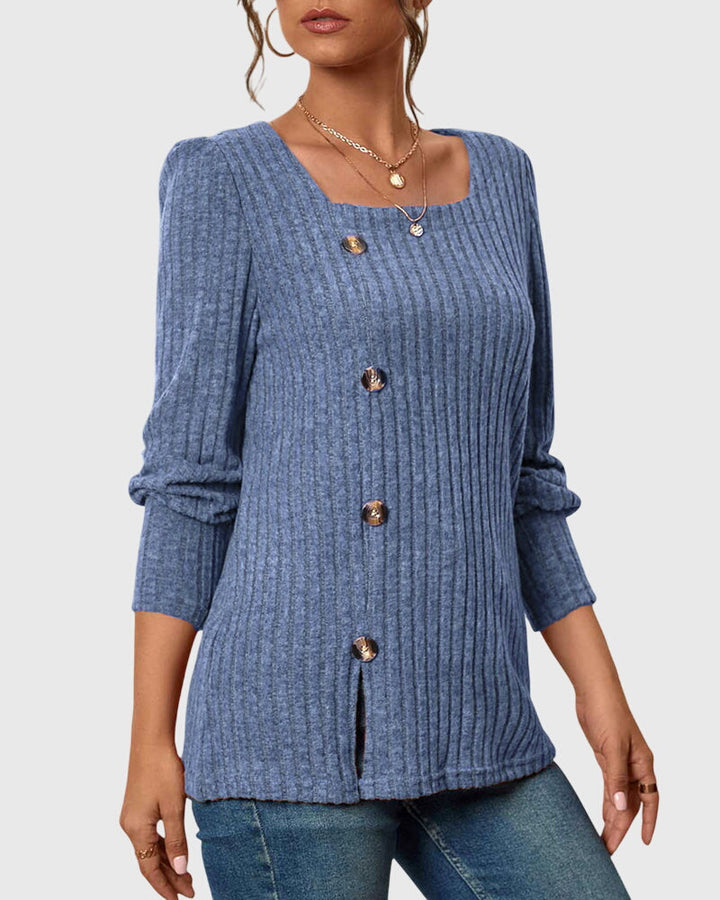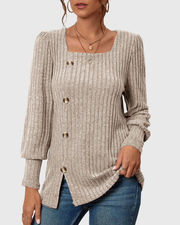 Iliana | Camisa monocromática con cuello cuadrado y botones