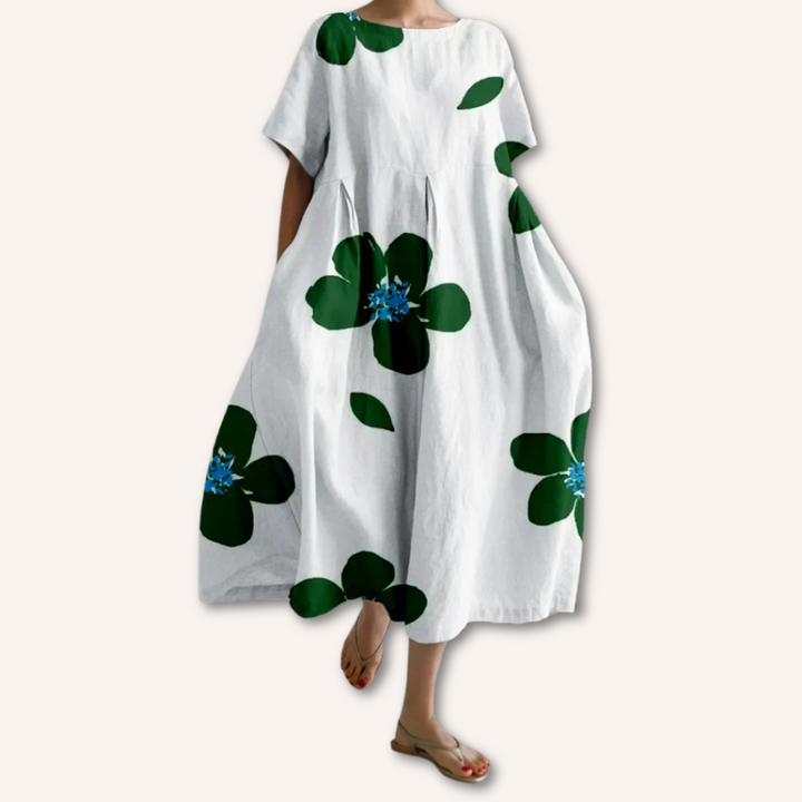 El vestido Lara™ destaca por su encantador estampado floral y su corte fluido que realza la figura. Perfecto para días soleados, salidas casuales o una cita especial.