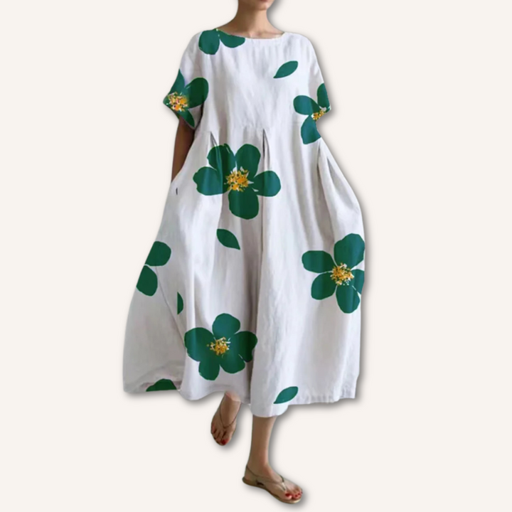 El vestido Mira combina elegancia y comodidad con un diseño floral encantador. Su corte fluido y su tejido ligero lo convierten en la opción ideal para paseos al sol, salidas casuales o incluso una cena especial. Destaca sin esfuerzo y siéntete libre con cada paso.
