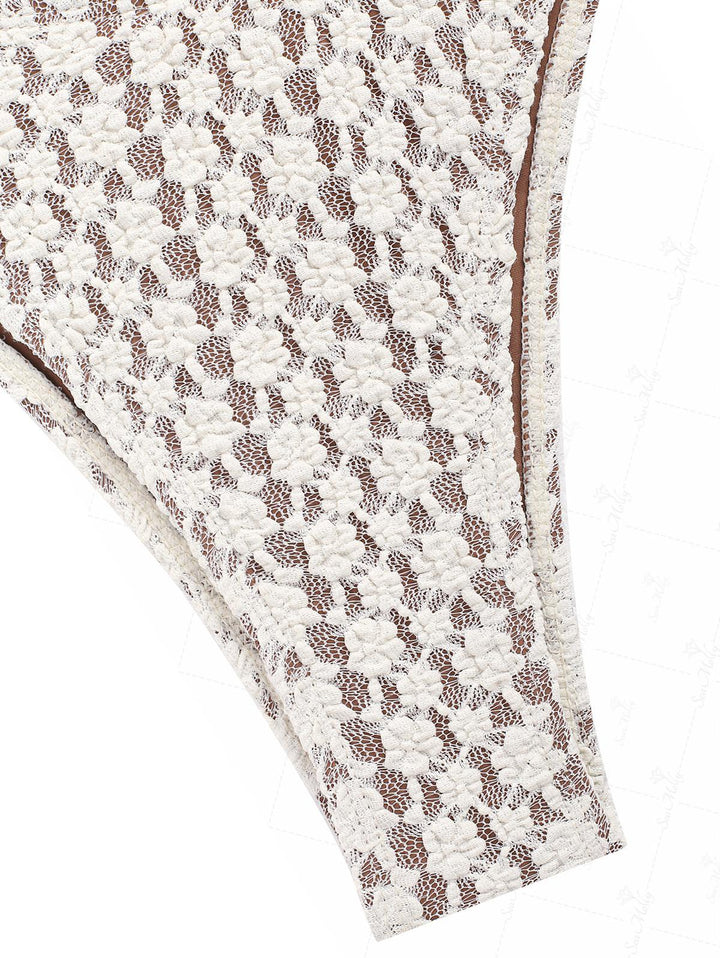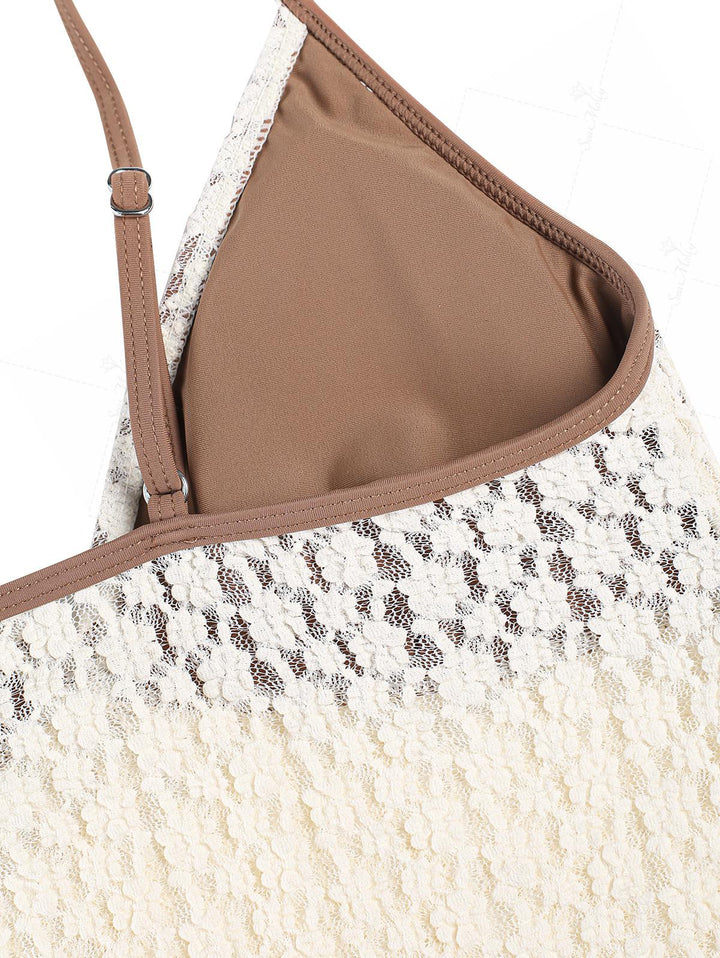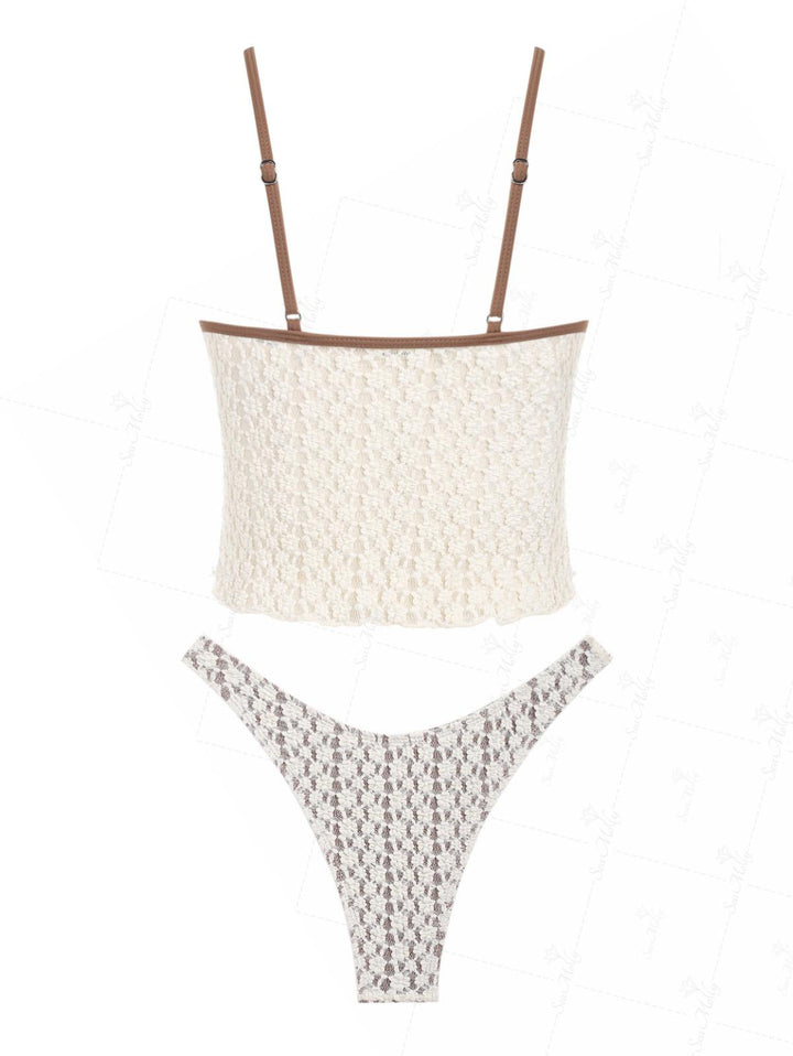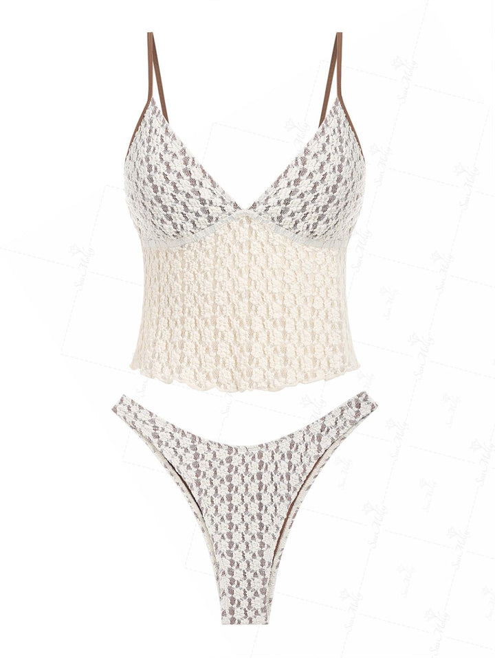 Nahia | Conjunto de tankini vintage de encaje jacquard con ribete festoneado