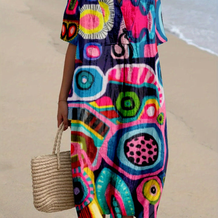 El vestido Nerea destaca por su estampado delicado y su corte cómodo que favorece a todo tipo de cuerpo. Una prenda versátil que te acompaña en cualquier ocasión.