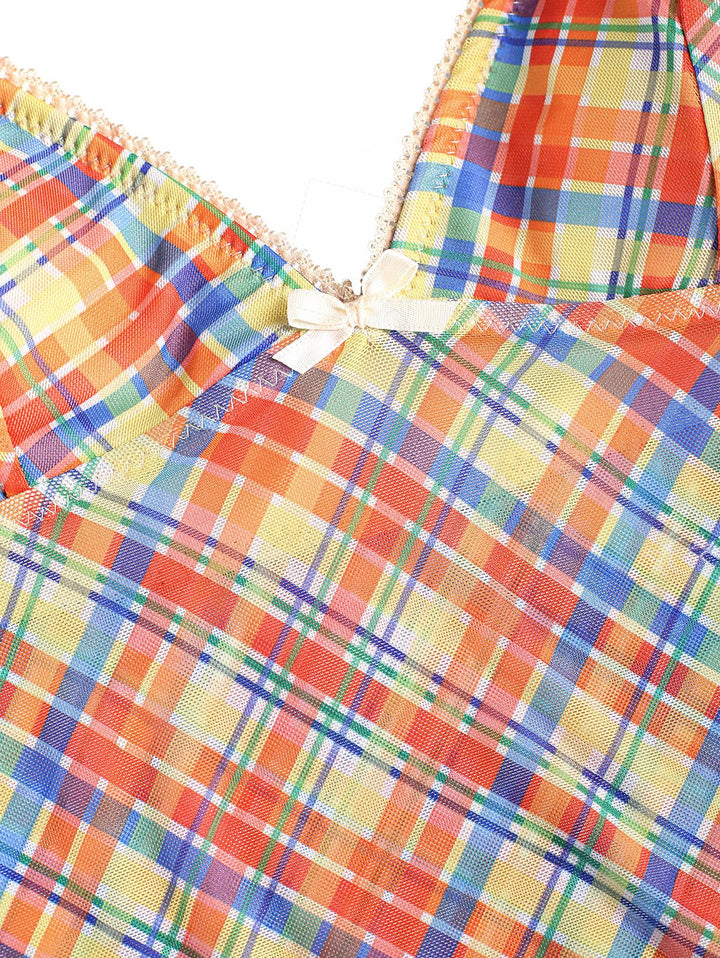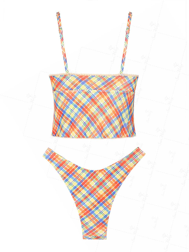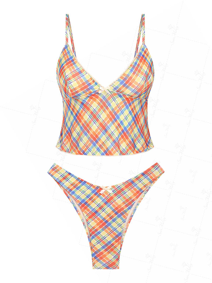 Nixia | Conjunto de tankini con adorno de lazo y ribete de encaje a cuadros