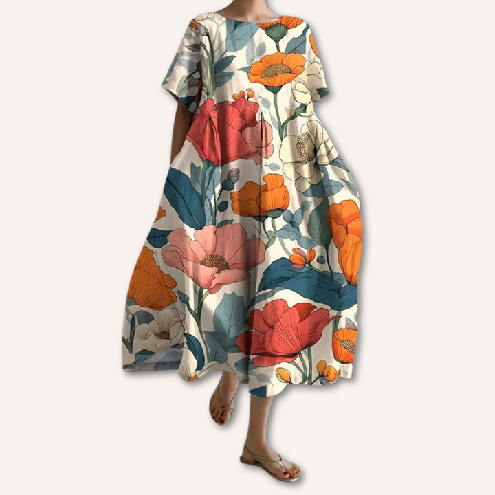 El vestido Nora está diseñado para ofrecerte una silueta femenina y cómoda. Con un precioso estampado floral y un corte largo que fluye con cada paso, es ideal para los días soleados o eventos informales. Su diseño versátil lo convierte en una prenda imprescindible esta temporada.