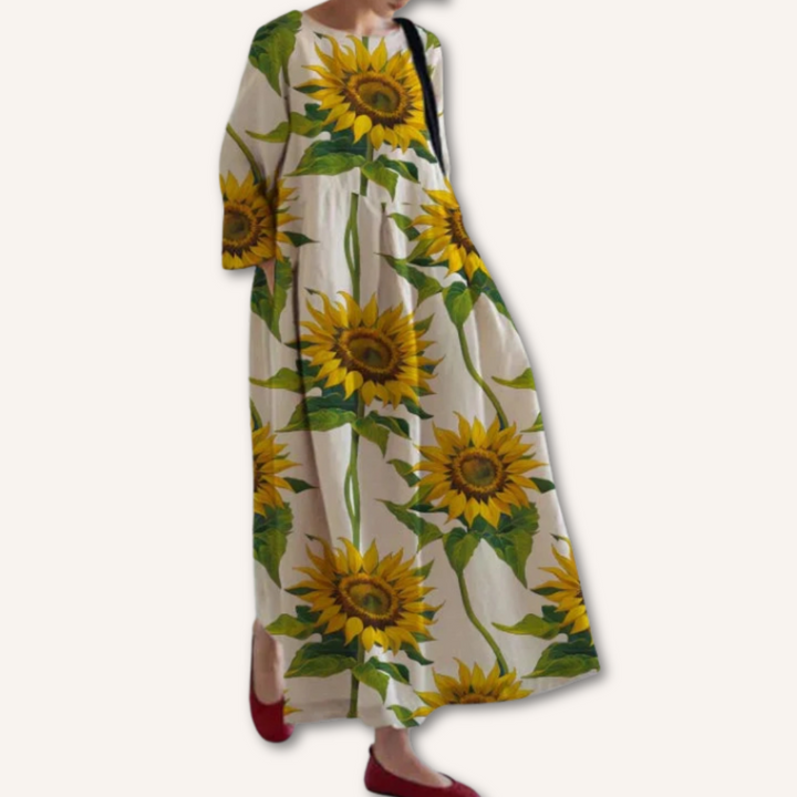 El vestido Nova combina un diseño fluido con un estampado llamativo que realza tu personalidad. Ideal para los días cálidos, su corte largo y su tela ligera te ofrecen comodidad y estilo sin esfuerzo. Es la prenda perfecta para paseos, escapadas de verano o una cita informal.
