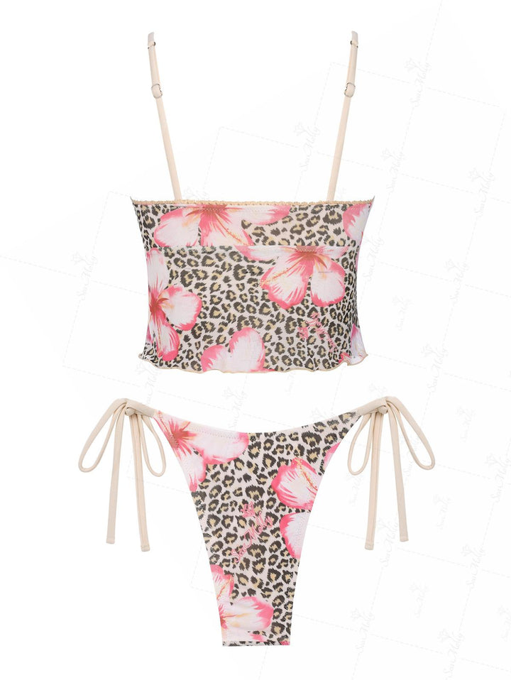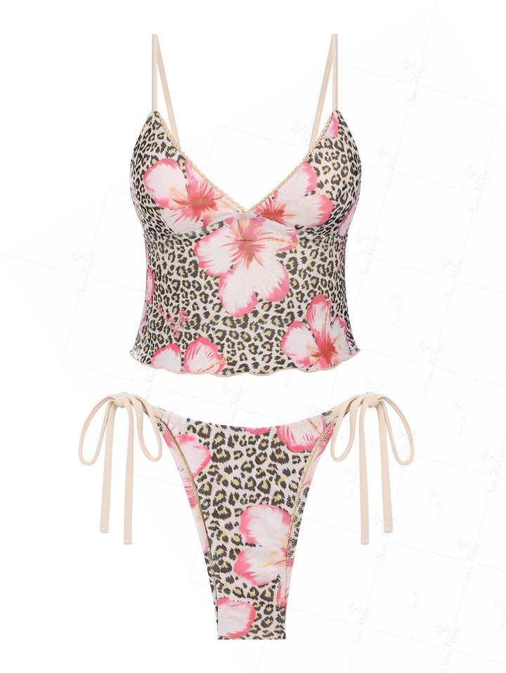 Odalys | Conjunto de tankini con estampado floral leopardo vintage