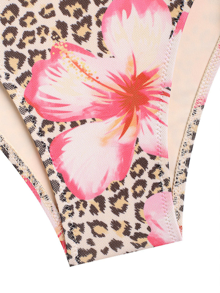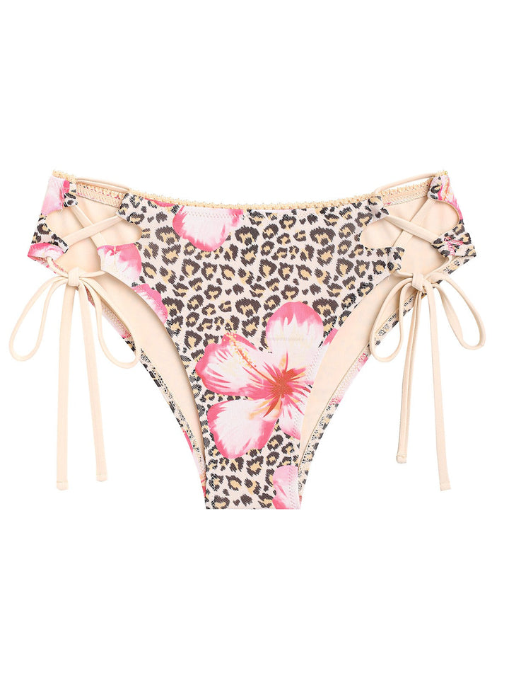 Prisila | Bikini estilo hipster con lazos laterales y estampado floral de leopardo