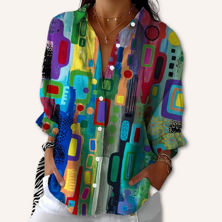 La camisa Silvia™ destaca por su estampado multicolor que aporta vida y personalidad a cualquier conjunto. Con un diseño moderno y cómodo, es perfecta para quienes buscan un look fresco y original.