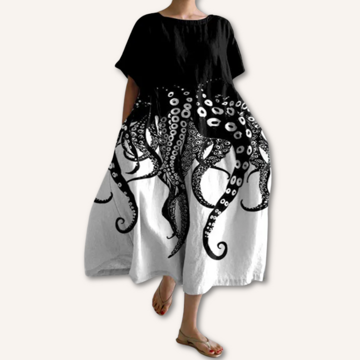 El vestido Teresa™ combina un estampado vibrante con un corte fluido y cómodo. Perfecto para quienes buscan un look alegre, femenino y con mucha personalidad.