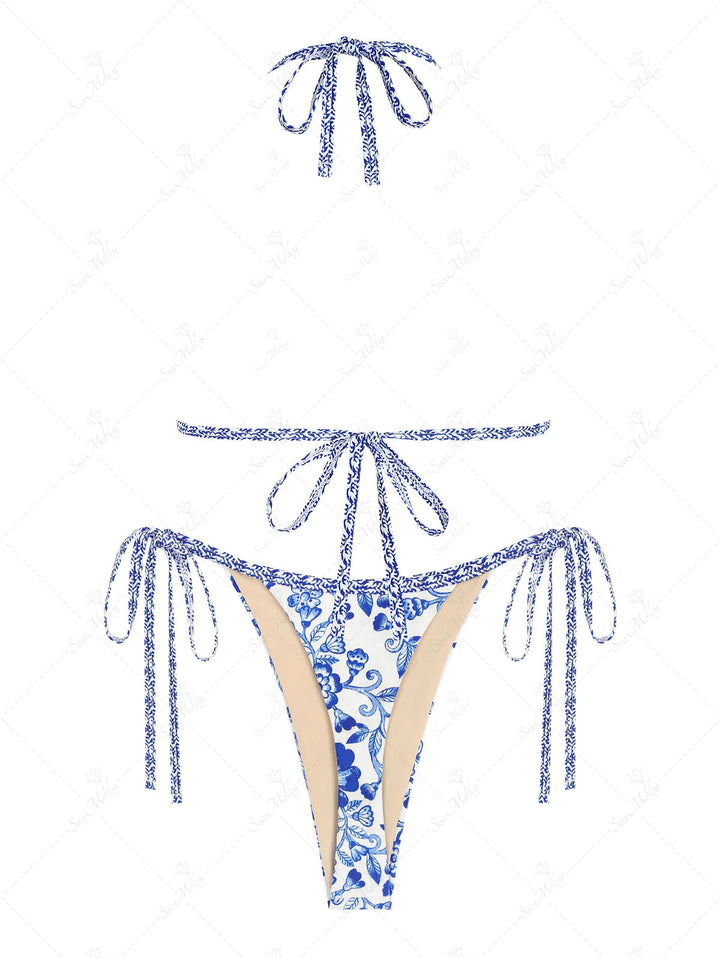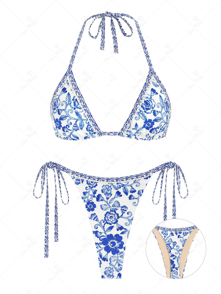 Triana | Conjunto de bikini con cuello halter y lazo en la espalda con encaje floral vintage.