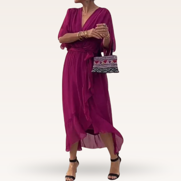 El vestido Valeria está confeccionado con materiales de la mejor calidad, ligeros y suaves al tacto, perfectos para los días cálidos. Su diseño fluido y elegante lo hace ideal para cualquier ocasión veraniega, desde paseos casuales hasta eventos especiales.